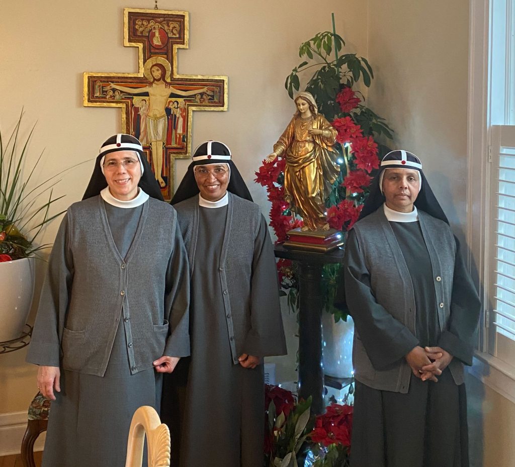 The Bridgettines on their black veil wear a crown of white cloth with five red signs for a perennial memory of the five wounds of the Divine Savior.